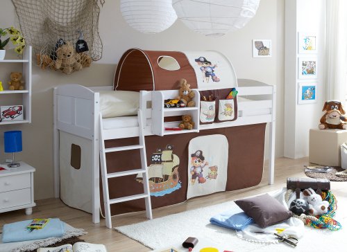 Dieses schöne weiße Hochbett mit seinen hohen Kopfteilen kann nicht nur durch Optik überzeugen! Um Ihrem Kind einen sicheren Schlafplatz zu bieten ist es aus massiven Kiefernholz gefertigt, besitzt rundherum einen Fallschutz sowie eine Schrägleiter, mit deren Hilfe ein auf- und absteigen leicht von der Hand geht.Aufbau: Selbstaufbau, mit ausführlicher MontageanleitungBelastbarkeit (max. kg): min. 75kg je Liegefläche (nach DIN741ff.)Besonderheiten: Weiß lackiert (Holzmaserung sichtbar)Bezugsstoff: 100% Baumwolle (Vorhang)Eigenschaften: Schrägleiter wahlweise links oder rechts montierbar, Breite mit Schrägleiter 119 cmFarbe: WeißGewicht: 26,6kgGruppe: HochbettLieferumfang: inkl. Vorhangstoff, Montagematerial und Montageanleitung (oh...