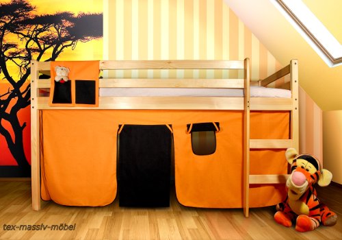 Vorhangset neues Design ORANGE-SCHWARZ für Hochbet Spielbett Etagenbett